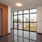 Acabamento com piso porcelanato e laminado, forro de gesso